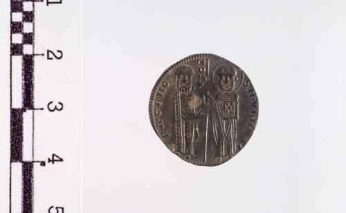 Dritto: S. Marco in piedi a d. porge il vessillo al Doge a s. in piedi.. Rovescio: Il Redentore, in trono.