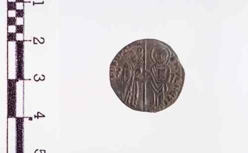 Dritto: S. Marco a d., in piedi di fronte, porge il vessillo al Doge a s. in piedi, volto a d.. Rovescio: Il Redentore in trono.