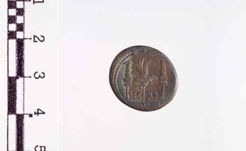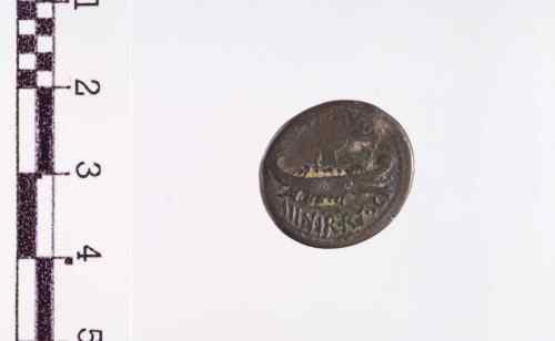 Dritto: nave a d con scettro sulla prora, bordo puntinato. Rovescio: aquila ad ali spiegate su stendardo che divide la legenda tra due insegne militari