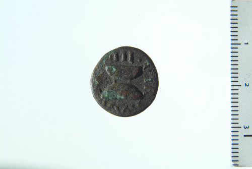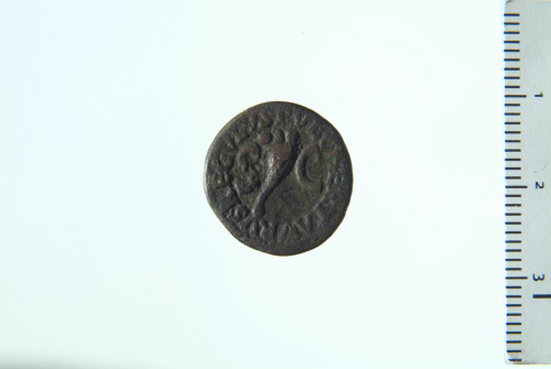 Dritto: cornucopia; contorno perlinato. Rovescio: Altare con ghirlande