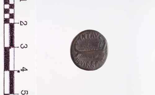 Dritto: nave a d. con scettro sulla prora, bordo puntinato. Rovescio: aquila ad ali spiegate su stendardo che divide la legenda tra due insegne militari