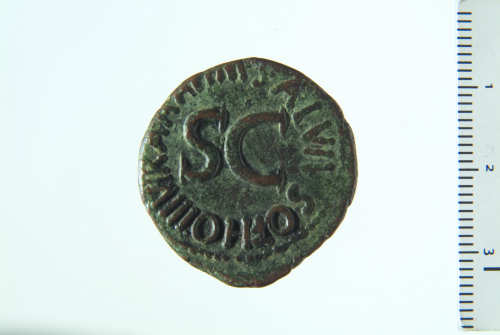 Dritto: Testa di Augusto a s.; contorno perlinato. Rovescio: