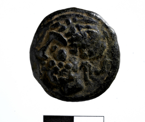 Dritto: Testa laureata di Saturno a s.. Rovescio: Prua a s.