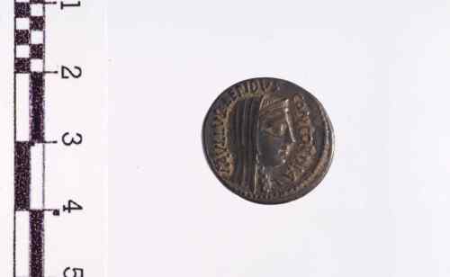 Dritto: Testa di Concordia a d., indossa velo e diadema. Cerchio di puntini.. Rovescio: Trofeo al centro, a d. figura di togato (L. Aemilius Paullus), a s. tre prigionieri (re Perseo di Macedonia e i suoi figli). Cerchio di puntini.