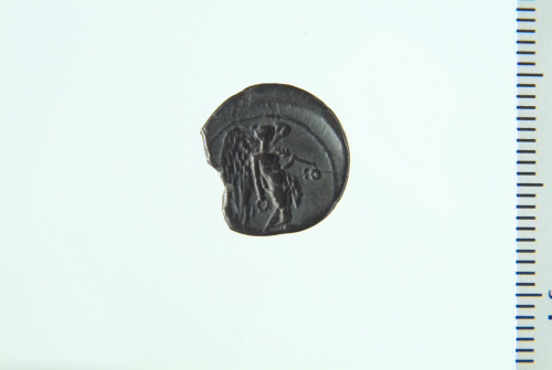 Dritto: Testa laureata di Apollo a d.; contorno perlinato. Rovescio: Vittoria alata stante a d. con palma e ghirlanda; contorno perlinato