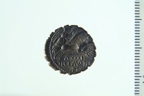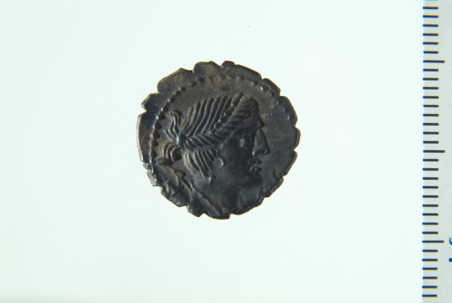 Dritto: Busto di Diana drappeggiato a d. con arco e faretra in spalla; contorno perlinato. Rovescio: Biga in corsa a d. guidata da Vittoria con ramo di palma, redini e ghirlanda; contorno perlinato