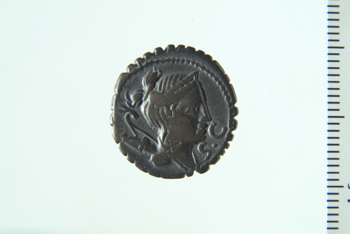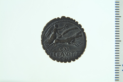 Dritto: Busto di Diana drappeggiato a d. con arco e faretra in spalla; contorno perlinato. Rovescio: Biga in corsa a d. guidata da Vittoria con ramo di palma, redini e ghirlanda; contorno perlinato