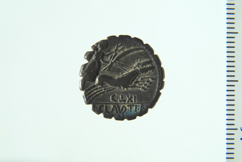 Dritto: Busto di Diana drappeggiato a d. con arco e faretra in spalla; contorno perlinato. Rovescio: Biga in corsa a d. guidata da Vittoria con ramo di palma, redini e ghirlanda; contorno perlinato