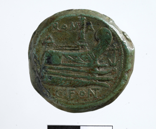 Dritto: Testa laureata di Giano. Cerchio di puntini.. Rovescio: Prua a d. Cerchio di puntini.