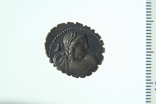 Dritto: Busto drappeggiato di anfitrite visto da dietro e rivolto a d.; contorno perlinato. Rovescio: Biga in corsa a d. con due cavalli marini guidata da Giove con redini e tridente; contorno perlinato