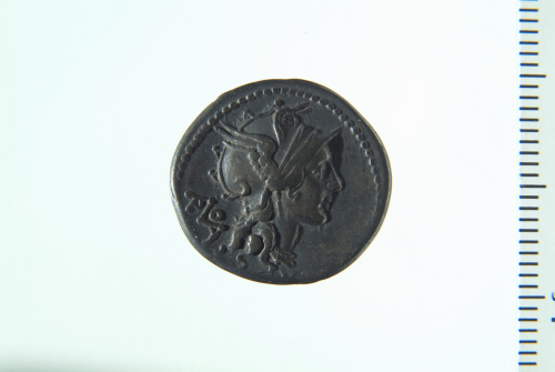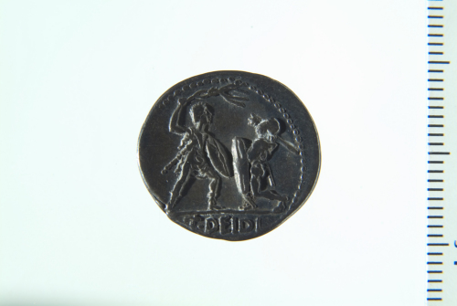 Dritto: Testa elmata di Roma a d.; contorno perlinato. Rovescio: Combattimento tra gladiatori armati con scudi frusta e mazza; contorno perlinato