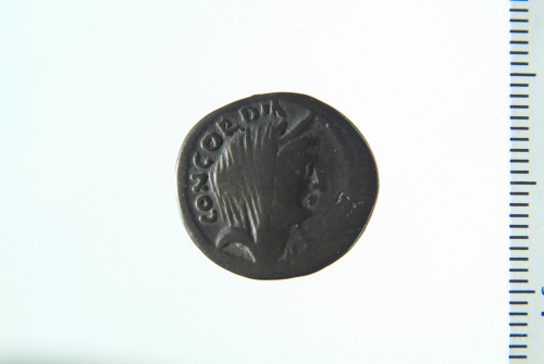 Dritto: Testa velata di Concordia a d.; contorno perlinato. Rovescio: Santuario di Venere Cloacina con iscrizione CLOACIN; contorno perlinato