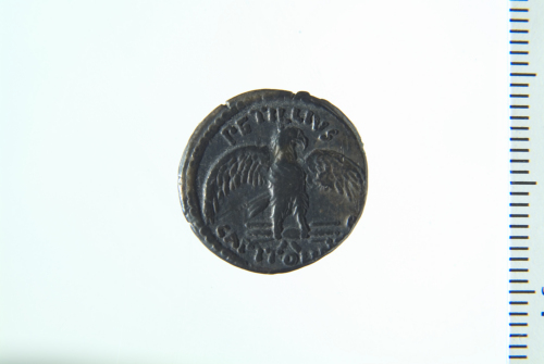 Dritto: Aquila ad ali spiegate su fulmine rivolta a d.; contorno perlinato. Rovescio: Fronte del tempio capitolino esastila decorata con festoni; sul tetto statue di bighe alle estremità e di una quadriga al centro; contorno perlinato