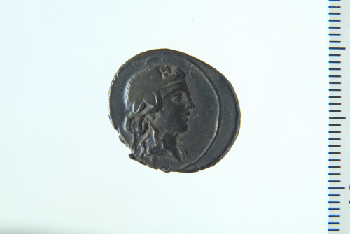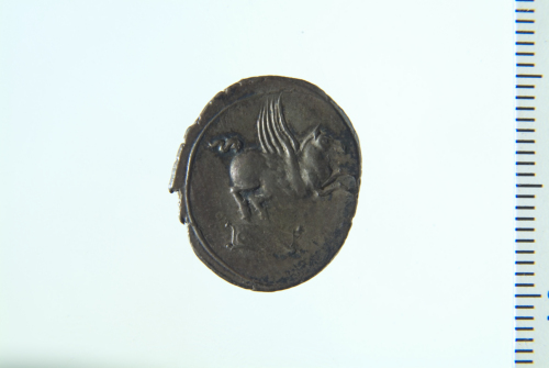 Dritto: Testa di Libero con ghirlanda di vite a d.; contorno lineare. Rovescio: Pegaso in volo a d.; contorno lineare
