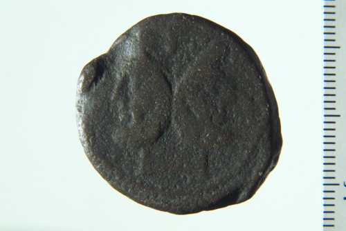 Dritto: Testa laureata e barbata di Giano bifronte; contorno perlinato. Rovescio: Prua di galea a d.; contorno perlinato