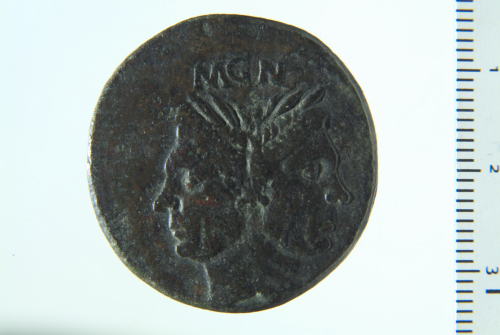 Dritto: Testa laureata di Giano con le fattezze di Pompeo Magno; contorno perlinato. Rovescio: Prua di galea a d.; contorno perlinato