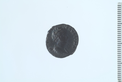 Dritto: Busto di Diva Faustina a d.; contorno perlinato.. Rovescio: Pavone andante a d., con testa rivolta a s.