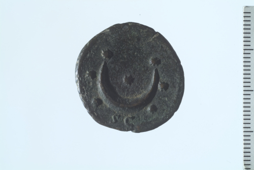 Dritto: Busto drappeggiato di Faustina I a d.; contorno perlinato.. Rovescio: Crescente lunare e sette stelle.