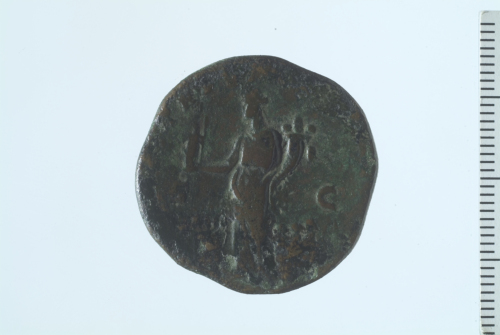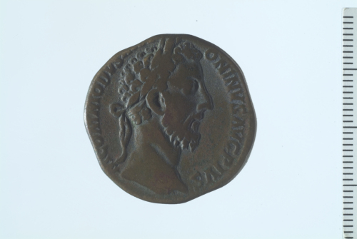 Dritto: Testa laureata di Commodo a d.. Rovescio: Annona stante a s., recante statuetta (di Concordia?) e cornucopia; a s., modio e spighe di grano; a d. due figure e Vittoria entro imbarcazione.