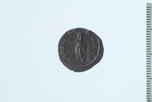 Dritto: Testa laureata di Settimio Severo a d.; contorno perlinato.. Rovescio: Settimio Severo, velato, stante a s, recante rotolo e ramo; contorno perlinato.