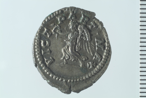 Dritto: Testa laureata di Settimio Severo a d.; contorno perlinato.. Rovescio: Vittoria avanzante a s.,recante corona e palma; contorno perlinato.