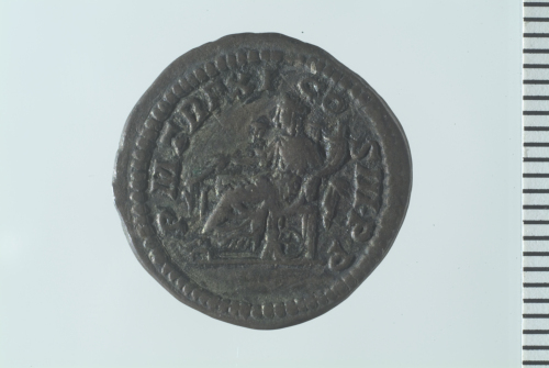 Dritto: Testa laureata di Settimio Severo a d.; contorno perlinato.. Rovescio: Fortuna seduta a s., recante timone e cornucopia; contorno perlinato.