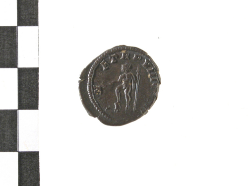 Dritto: Busto laureato e drappeggiato di Antonino III a d.; contorno perlinato.. Rovescio: Marte stante a s., con piede d. su elmo, recante lancia e rametto; contorno perlinato.