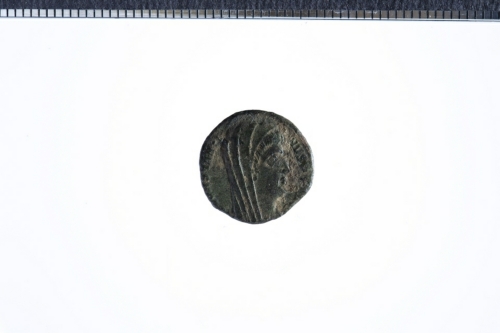 Dritto: Busto velato del Divo Costantino a d.. Rovescio: Costantino conduce quadriga verso d., es. CONS[.]