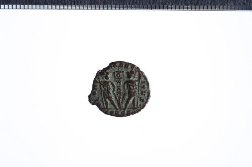 Dritto: Busto elmato di Roma a s.. Rovescio: Due legionari con asta e scudo al piede ai lati di trofeo militare, es. CONS[
