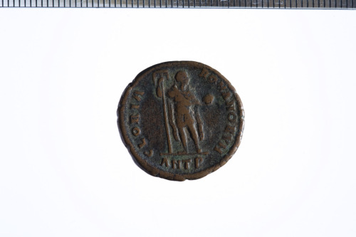 Dritto: Busto diadem., corazz. e drapp. a d.. Rovescio: Imperatore stante con labaro nella d. e globo nella s., es. ANTB