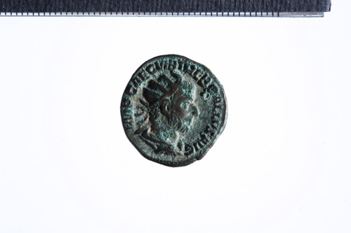 Dritto: Busto radiato e drappeggiato di Treboniano Gallo a d.; contorno perlinato.. Rovescio: Libertas stante a s. con pileus e scettro trasversale appoggiata a una colonna; contorno perlinato.