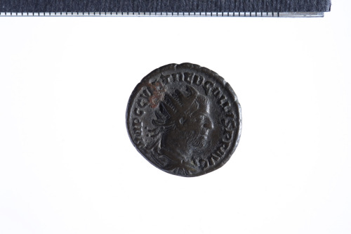 Dritto: Busto radiato e drappeggiato di Treboniano Gallo a d.; contorno perlinato.. Rovescio: Giunone seduta a s. con scettro e spiga di grano; contorno perlinato.