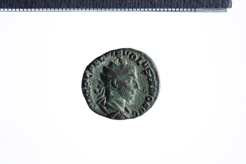 Dritto: Busto radiato e drappeggiato di Volusiano a d.; contorno perlinato.. Rovescio: Pax stante a s. con ramo e scettro trasversale; contorno perlinato.