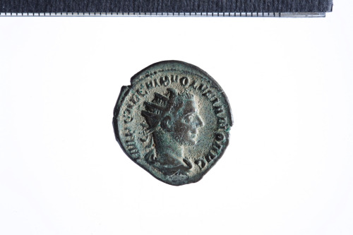 Dritto: Busto radiato e drappeggiato di Volusiano a d.; contorno perlinato.. Rovescio: Concordia seduta a s. con patera e doppia cornucopia; contorno perlinato.