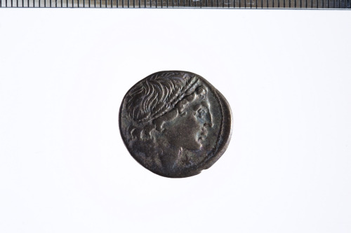 Dritto: Testa di un giovane coronata da una corona di quercia a d. (Apollo?); sotto al mento, un asterisco ; c.p.. Rovescio: I Dioscuri stanti di fronte, in mezzo ai loro cavalli, ognuno reggente una lancia; c.p.