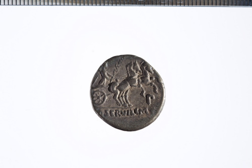 Dritto: Busto di Minerva a s. con elmo corinzio ed egida; c.p.. Rovescio: Vittoria in biga a d. che regge le redini con la mano d. e un ramo di palma con la s.; c.p.