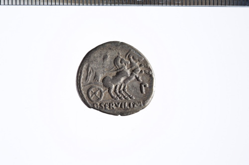 Dritto: Busto di Minerva a s. con elmo corinzio ed egida; c.p.. Rovescio: Vittoria in biga a d. che regge le redini con la mano d. e un ramo di palma con la s.; c.p.