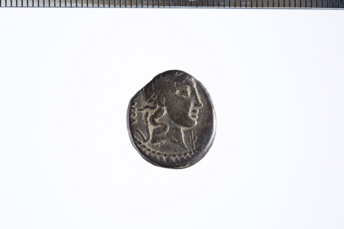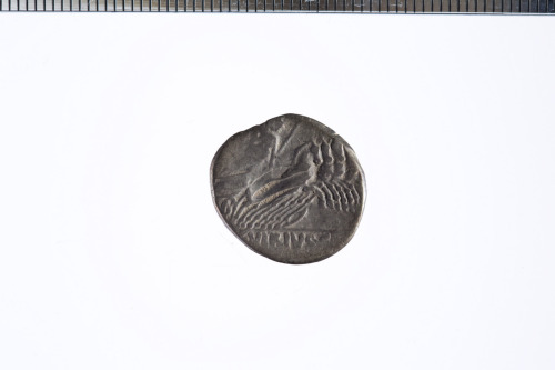 Dritto: Testa laureata di Apollo a d.; sotto il mento lettera di controllo F (greco); c.p.. Rovescio: Minerva in quadriga a d. che regge redini e una lancia con la mano s. e un trofeo con la d.; c.p.