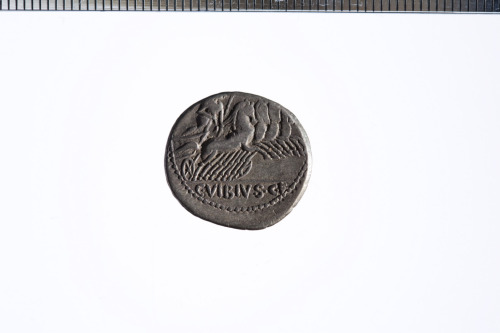 Dritto: Testa laureata di Apollo a d.; sotto il mento II; c.p.. Rovescio: Minerva in quadriga a d. che regge redini e una lancia con la mano s. e un trofeo con la d.; c.p.