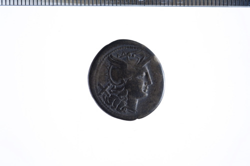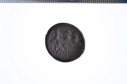 Dritto: Testa galeata di Roma a d.; dietro simbolo di valore X; c.p.. Rovescio: La dea Luna su biga a d., regge le redini con la s. e frustino nella d., cavalli non al galoppo; es. ROMA