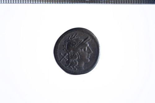 Dritto: Testa galeata di Roma a d.; dietro simbolo di valore X; c.p.. Rovescio: Dioscuri appaiati al galoppo a d.; es. ROMA in contorno lineare