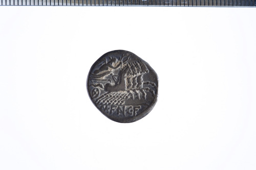 Dritto: Testa elmata di Roma a d.; davanti simbolo di valore X; c.p.. Rovescio: Vittoria in quadriga a d., regge con la s. le redini e corona nella d.