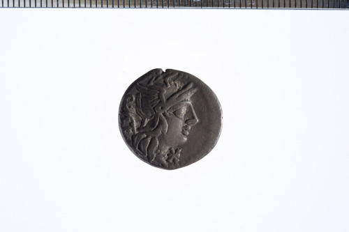 Dritto: Testa elmata di Roma a d.; davanti simbolo di valore X barrato; c.p.. Rovescio: Giove su quadriga a d.; es. ROMA