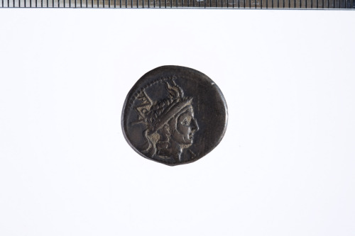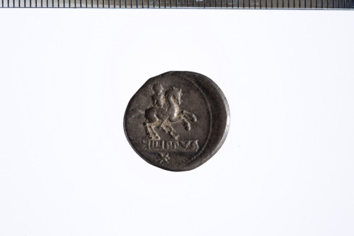 Dritto: Testa di Filippo V di Macedonia con elmo e diadema a d., dietro (ROMA), davanti sotto il mento lettera greca (phi). Rovescio: Statua equestre di cavaliere che regge ramo d'ulivo, fiore sotto il cavallo, es. X barrato