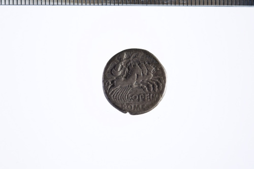 Dritto: Testa elmata di Roma a d., dietro corona, davanti sotto il mento X barrato, c.p.. Rovescio: Vittoria alata su biga a d. regge corona con la d. e nella s. le redini, es. ROMA