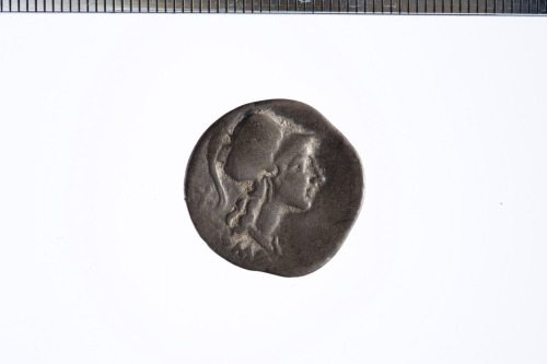 Dritto: Testa di Roma a d. con elmo corinzio, dietro simbolo di valore X. Rovescio: Roma seduta a d. su scudo con davanti Lupa e Gemelli; ai lati due uccelli