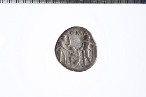 Dritto: busto di Marte drapp. e con elmo ad alta cresta, dietro simbolo di valore X.. Rovescio: Due guerrieri toccano con la spada un suino in braccio ad una figura inginocchiata tra loro.