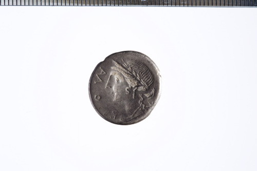 Dritto: Busto femminile a d., drapp. e con diadema; dietro simbolo di valore X barrato. Rovescio: Incuso per errore