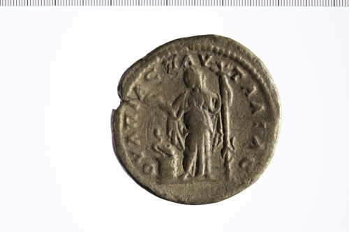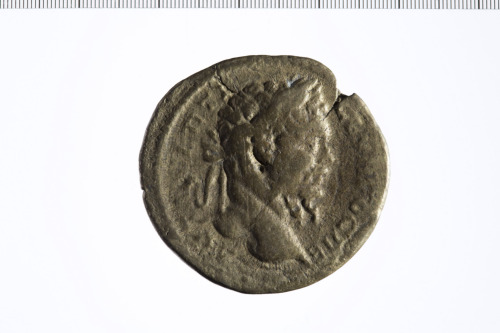 Dritto: Testa di Settimio Severo laureata a d.. Rovescio: Esculapio stante a s. con la mano d. su altare dal quale esce un serpente coll'altra mano tiene il suo bastone.