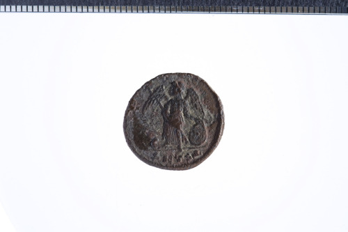 Dritto: Busto elmato di Costantipoli a s. con scettro. Rovescio: Vittoria stante su prora con spada e scudo, es. SMTS(delta)